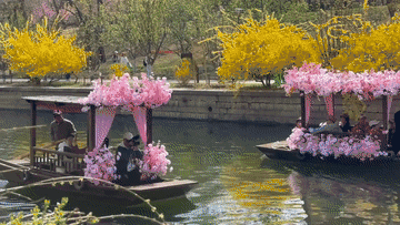 ■在杭州西溪国家湿地公园,一年一度的西溪花朝主题活动尽显春日浪漫。活动期间,公园集中展出105种花卉、近8万盆花株,打造十余处精品花境。每逢周末及法定节假日,游客到访西溪,可邂逅不同的“当令花神”,沉浸式体会花神文化与绿色生态的交融之美。